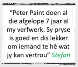 For a more detailed quote call us on 021 510 5222 or email us on info@peterpaint.co.za